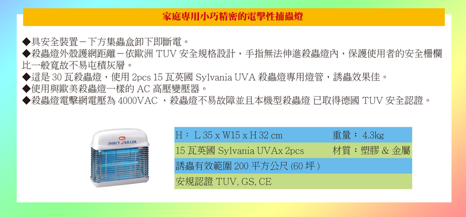 電擊性捕蟲燈若要設置於室外,可購買防潑濺型號。