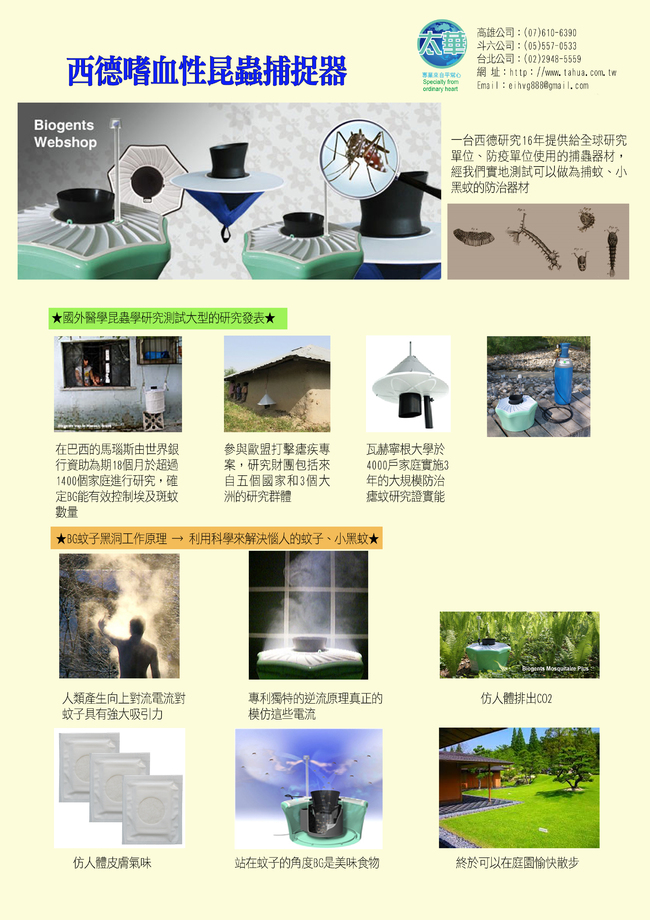 效果遠優於一般捕蟲燈,因為母蚊子更喜歡昏暗的地方,BG的二氧化碳或是誘引劑的吸引,使牠們受不了誘惑,靠近機器而捕獲。