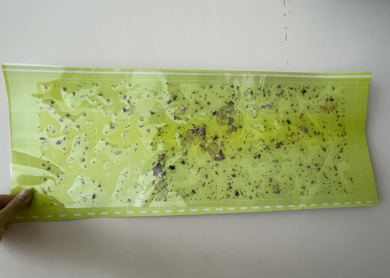 圖為客戶使用一個月所黏捕到的昆蟲,多為飛蛾、蒼蠅、蚤蠅。